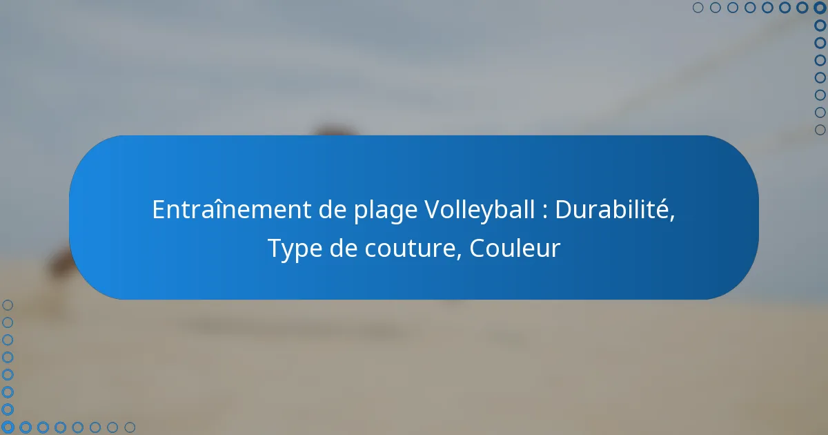 Choisir le bon ballon de volley-ball pour l’entraînement sur la plage implique de prendre en compte des facteurs tels que la durabilité, le type de couture et les options de couleur. Ces éléments impactent significativement les performances et la longévité, rendant essentiel de sélectionner un ballon qui répond à vos besoins d’entraînement.