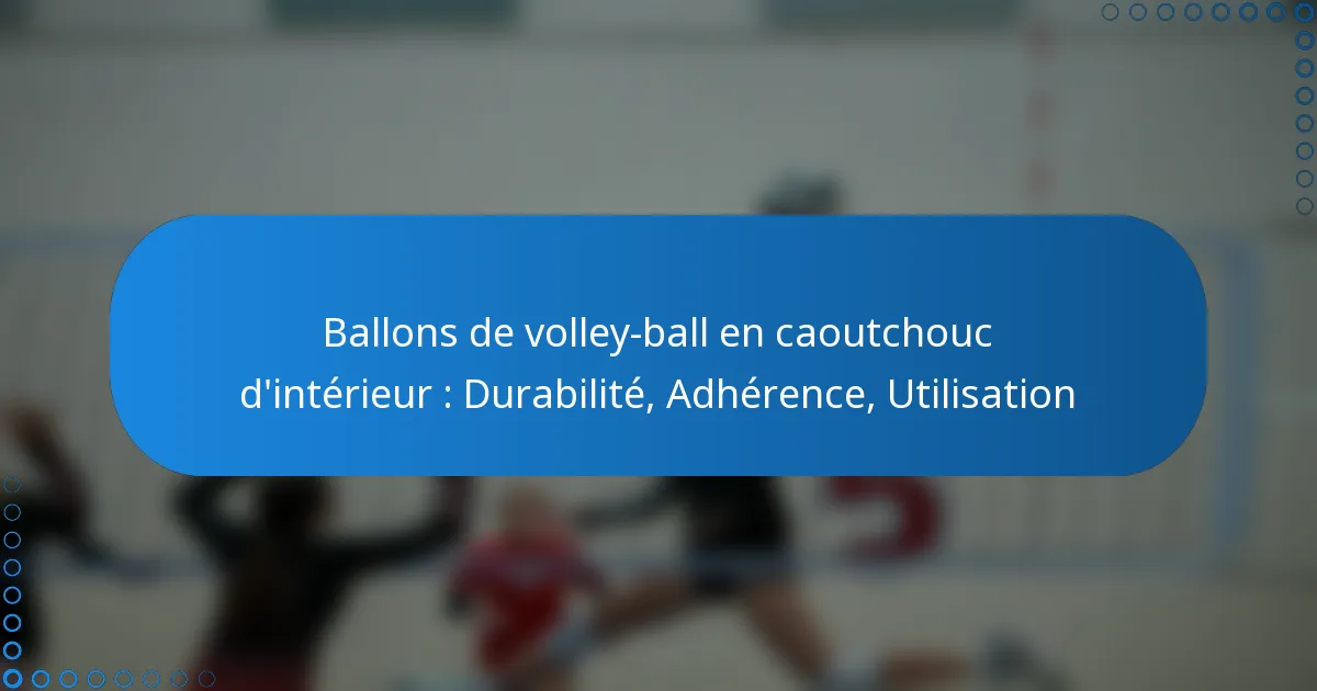 Les ballons de volley-ball en caoutchouc pour intérieur sont conçus pour la durabilité et la performance, ce qui les rend idéaux pour diverses surfaces de jeu. Leur composition matérielle et leur adhérence ont un impact significatif sur le contrôle du joueur, permettant des mouvements précis pendant le jeu. En comprenant les facteurs qui influencent leur longévité et leur entretien, les joueurs peuvent améliorer leur expérience globale sur le terrain.