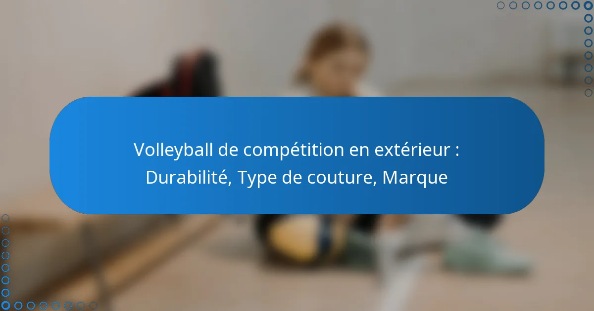 Lors de la sélection d’un ballon de volley-ball de compétition en extérieur, la durabilité est essentielle, influencée par la composition des matériaux, les conditions environnementales et un entretien approprié. Le choix du type de couture – cousue ou collée – joue également un rôle significatif dans la performance et la longévité. Des marques notables comme Wilson, Mikasa et Spalding sont réputées pour leurs ballons de volley-ball de haute qualité, garantissant aux joueurs de pouvoir concourir efficacement tout en bénéficiant d’une utilisation prolongée.